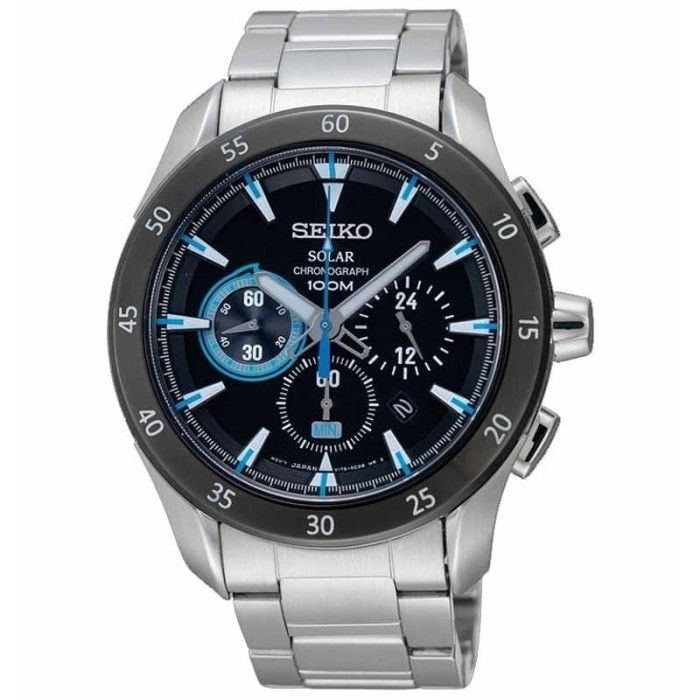 Seiko Solar SSC181P1 Chronograph Black Dial Stainless Steel - Jam Tangan Original