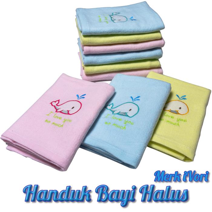 Terlaris Handuk bayi Ivory Jumbo 110Cmx60Cm Motif Bordir Halus warna Kuning Biru Pink - Handuk Ivory Random Promo