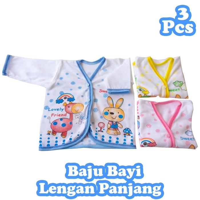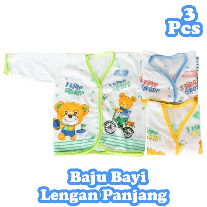 Terlaris 3Pcs Baju Bayi 0 -6 bulan baru lahir lengan Panjang newborn baju Panjang bayi - Hijau Biru Kuning Promo