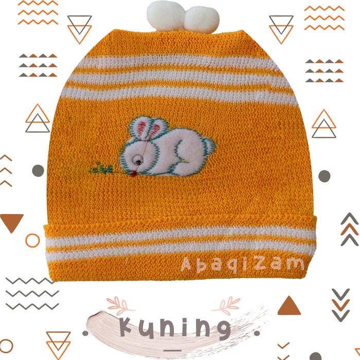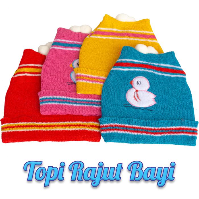 Murah Topi bayi rajut topi kupluk bayi anak murah Ecer dan Grosir Biru Kuning Pink Merah - Random Promo