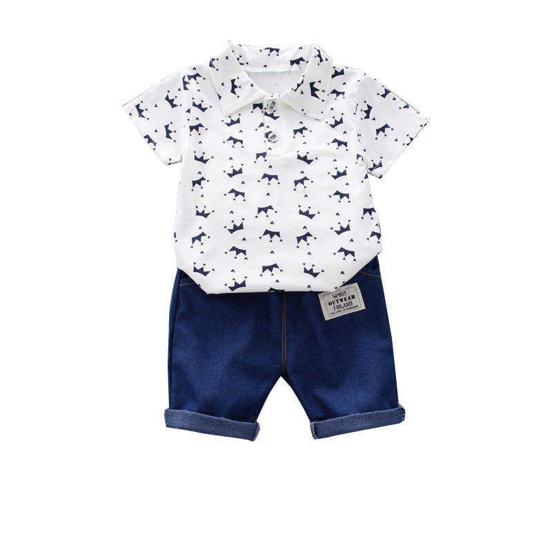 LKM148 Setelan Bayi Pakaian Anak Lengan Pendek Crown Mahkota + Celana Pendek [1KG 9PC] LITTLE KUMA
