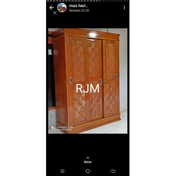 Lemari Pintu 3 Sleding Pintu Geser Lemari Pakaian Kayu Jati Lemari Pul Ukir