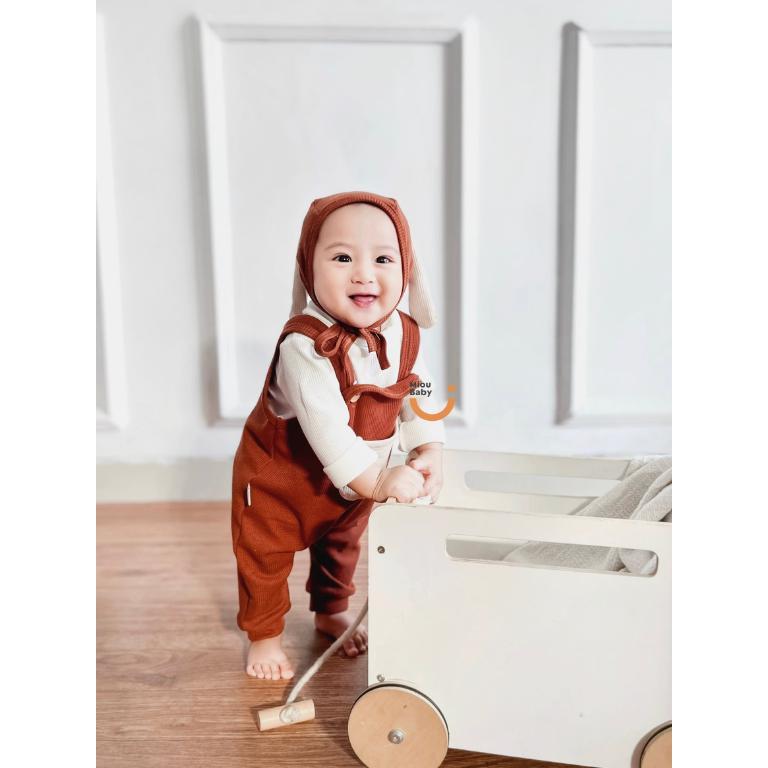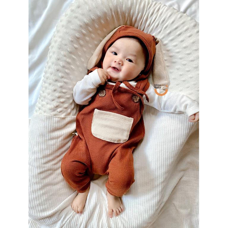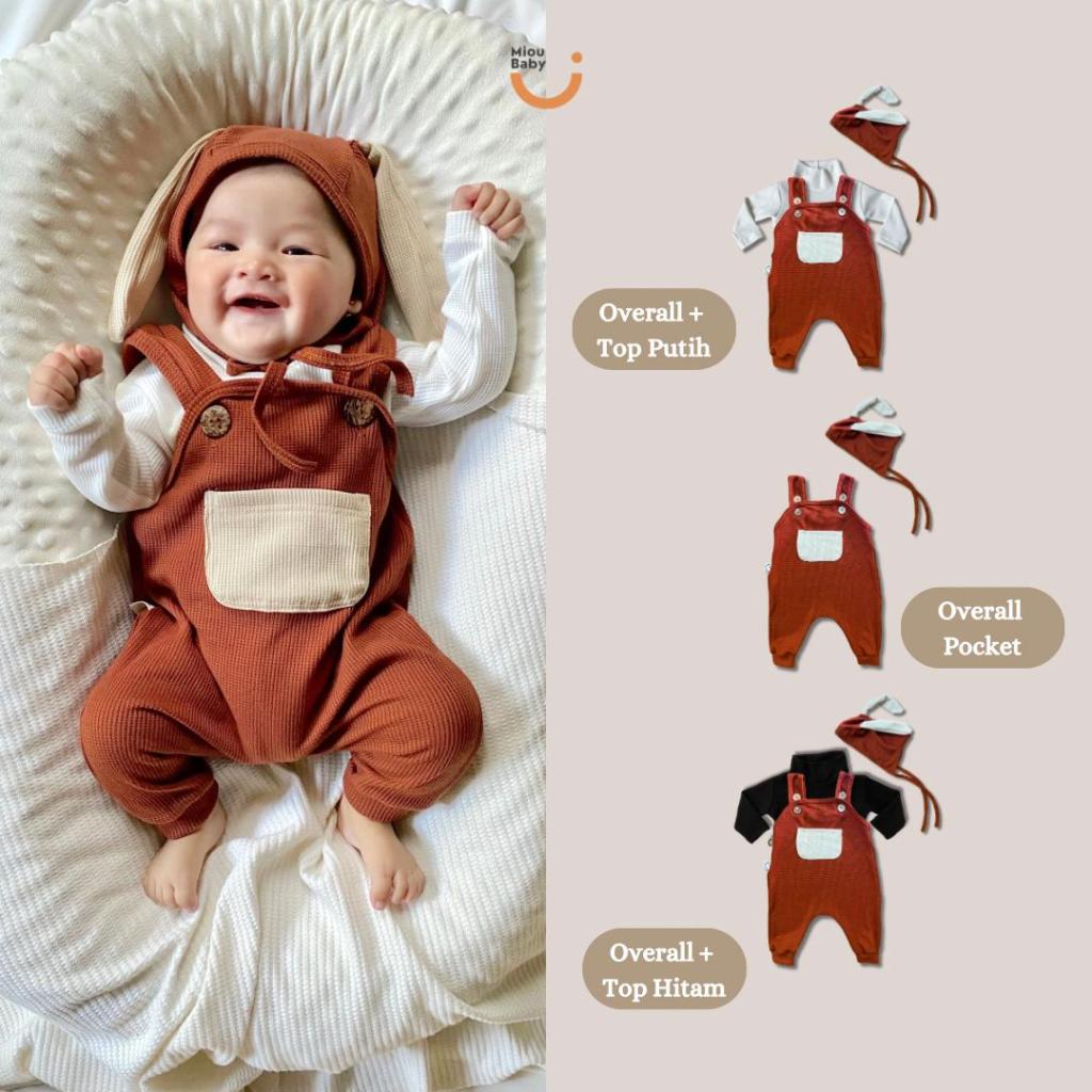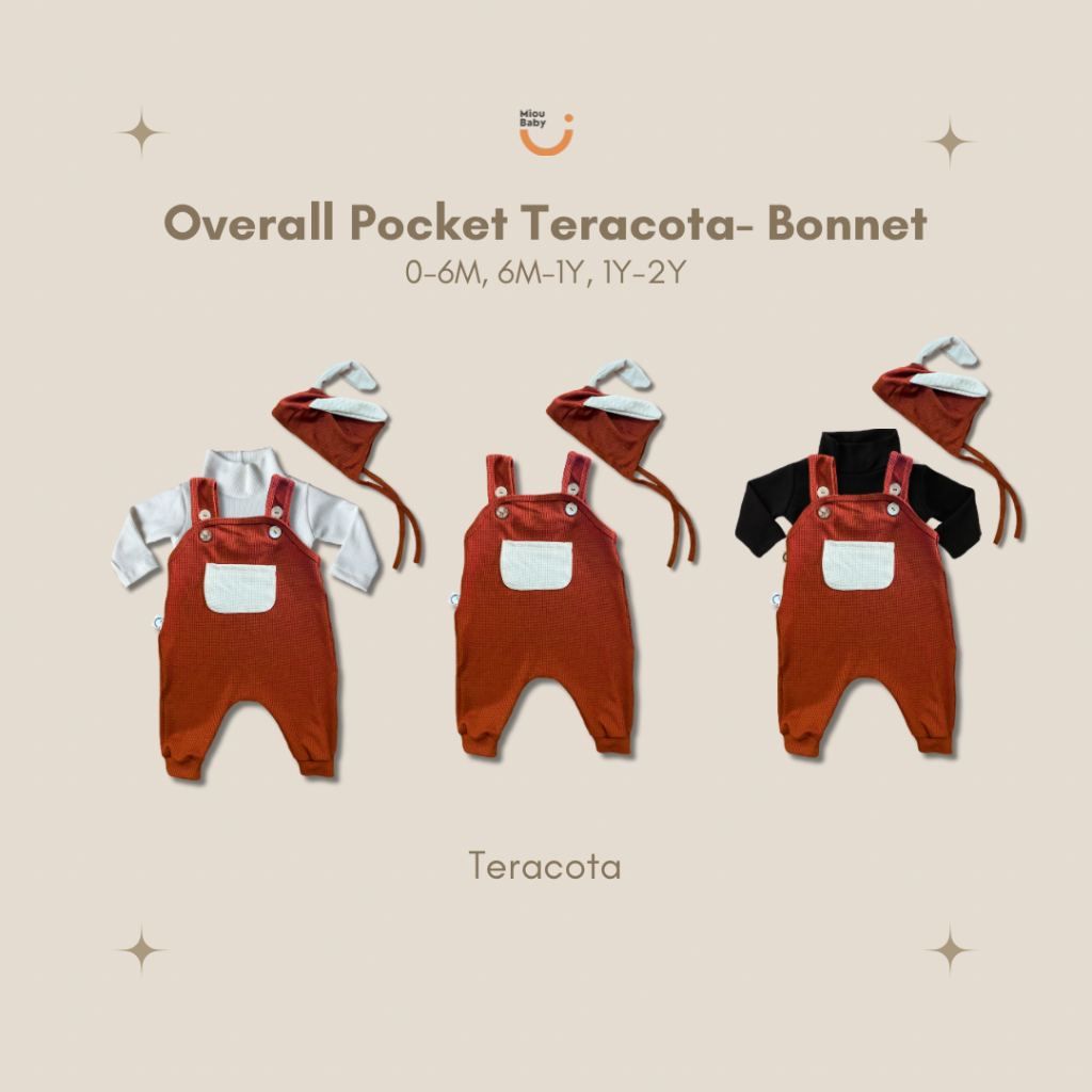 [6.6 SALE] Mioubaby Overall Pocket Teracota free bonnet / overall bayi / jumper bayi / jumpsuit bayi / playsuit bayi / r