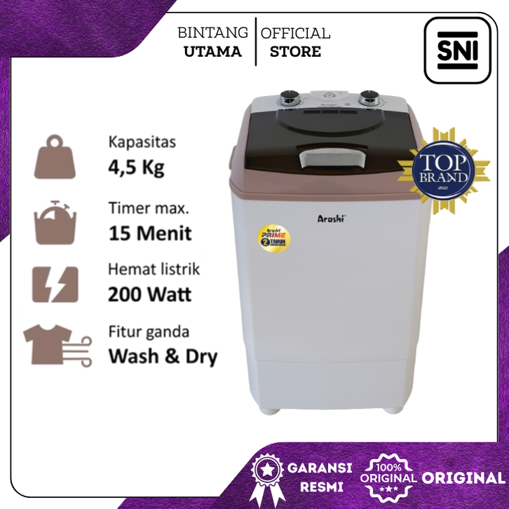 Mesin Cuci Arashi Awm 452A 1 Tabung 4.5 Kg Washing Machine Portable Garansi Resmi Official Store