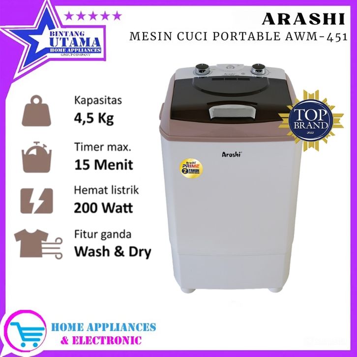 [Star] Mesin Cuci Portable 1 Tabung Arashi Washing Machine 4.5 Kg Garansi Resmi Official Store