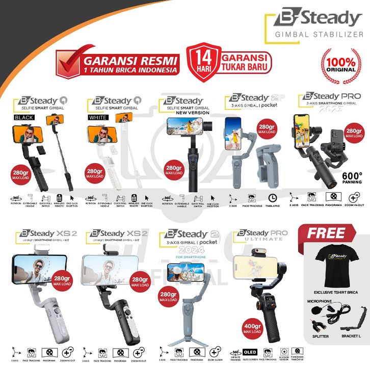 STABILIZER HP BRICA B-STEADY PRO 3-AXIS GIMBAL SMARTPHONE BSTEADY PRO 2023 NEW VERSION STABILIZER KAMERA