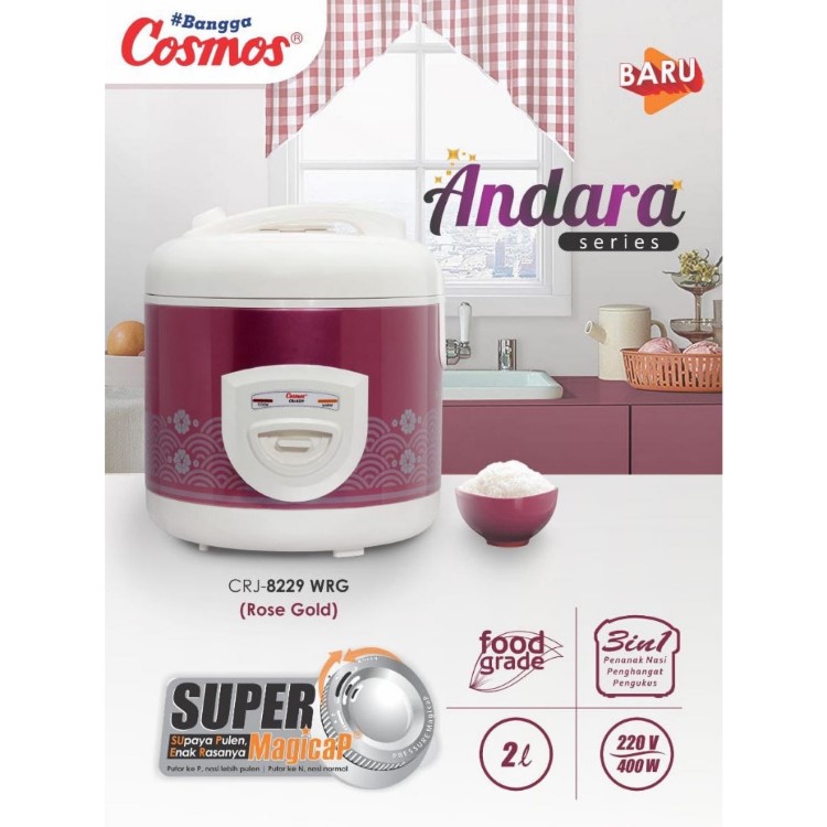 Magic Com Cosmos CRJ 8229 Rice Cooker 2 Liter Anti Lengket 3in1 Masak Kukus Hangat Body Stainless Penanak Nasi Murah