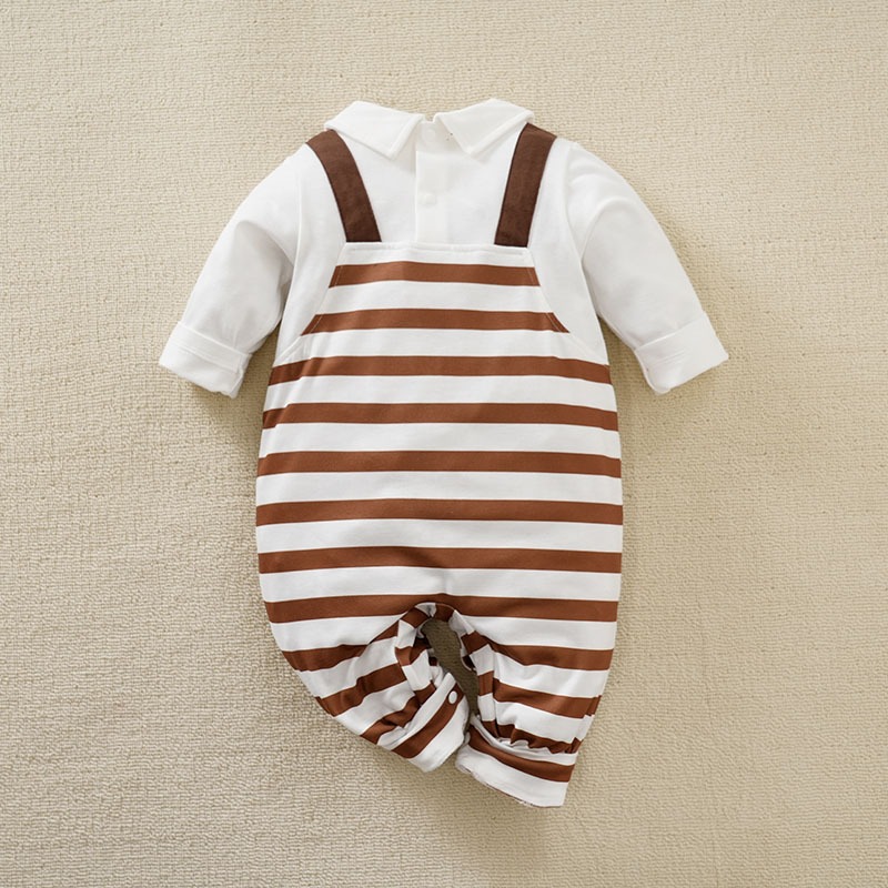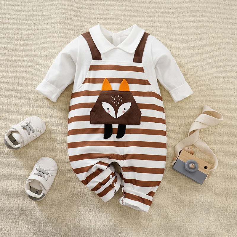 Baju Anak Bayi Laki Laki Premium Kaos Jumper Newborn Motif Garis Garis Rubah Cokelat