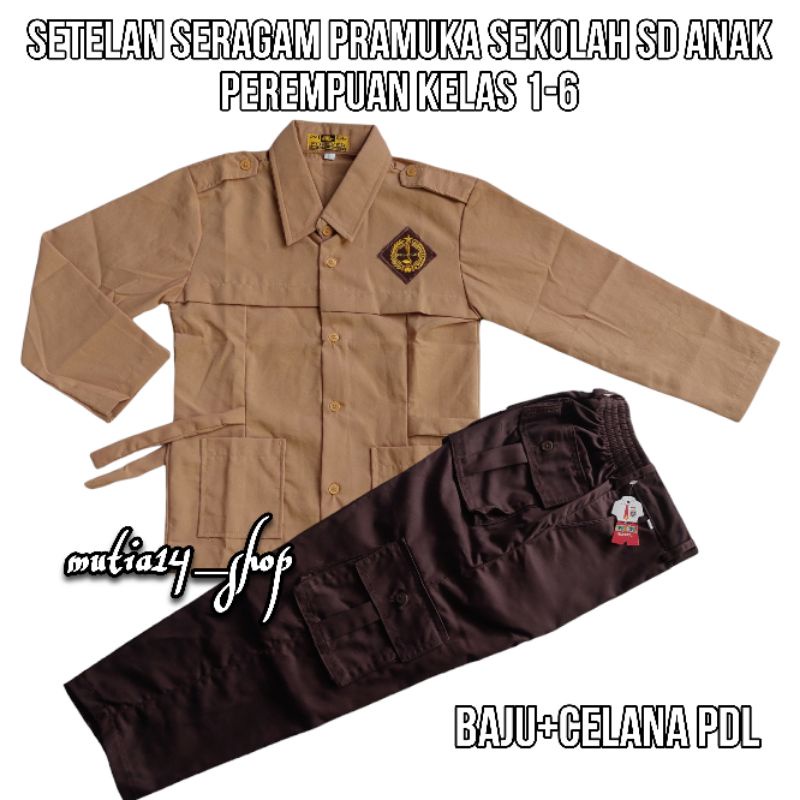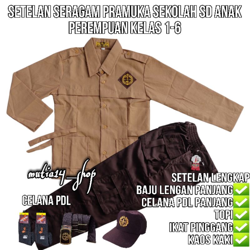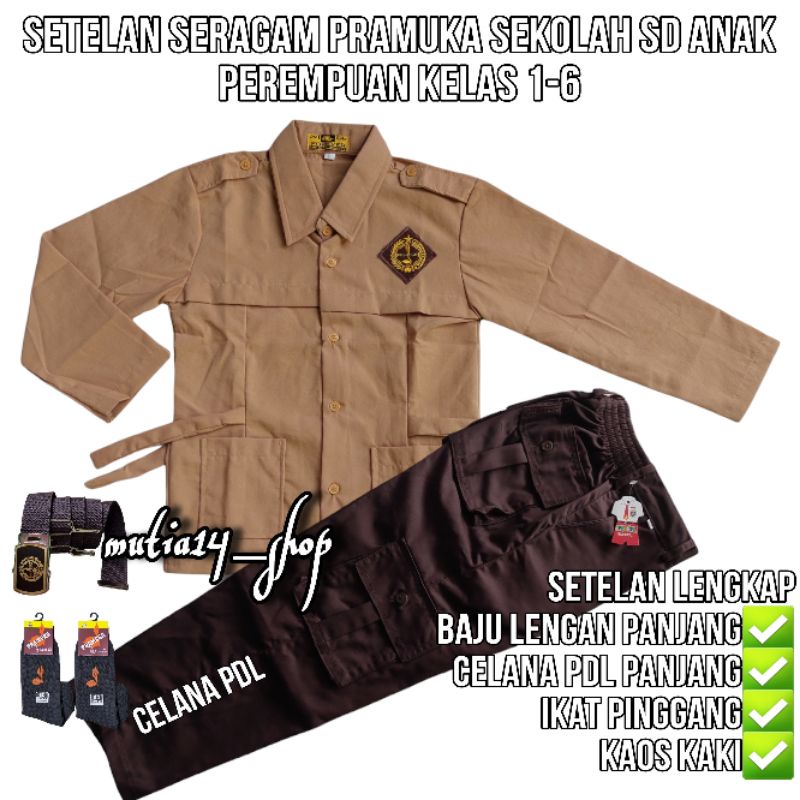 SETELAN PRAMUKA SEKOLAH SD ANAK PEREMPUAN BAJU LENGAN PANJANG CELANA PDL PANJANG PAKAIAN SERAGAM PRAMUKA SD