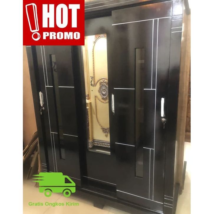 PROMO LEMARI PAKAIAN / LEMARI BAJU KAYU MINIMALIS 3 PINTU CAT DUKO