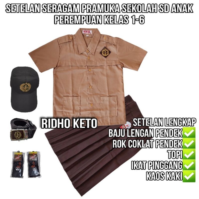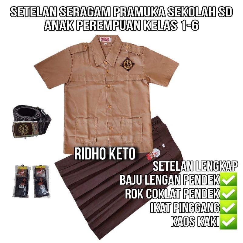 SETELAN SERAGAM PRAMUKA SEKOLAH SD ANAK PEREMPUAN BAJU PRAMUKA LENGAN PENDEK ROK PENDEK KELAS 1-6