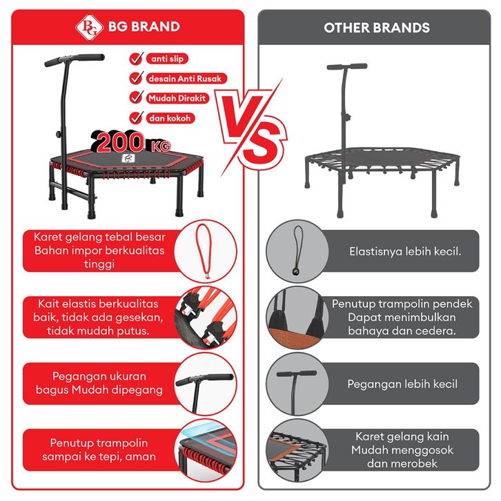 Trampolin Trampolin Original HTD Sport Trampoline Dewasa KUAT HINGGA 200KG Alat Olahraga Lompat Trampolin Elastis Indoo