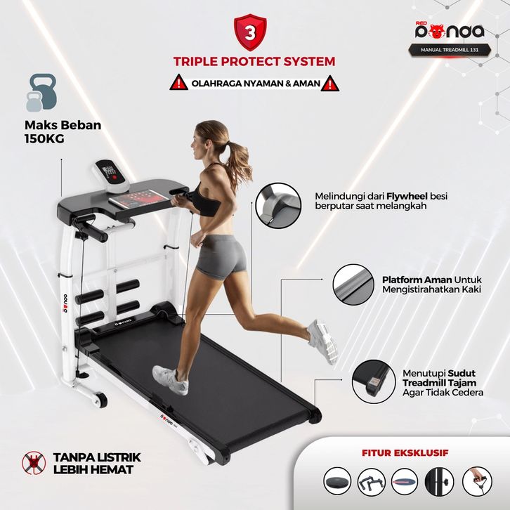 Treadmill Treadmill Original Treadmill Manual REDPANDA 131 Multifungsi Tanpa Listrik Lipat Portable Low Watt Fitness Gy