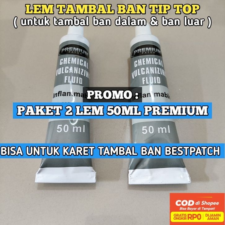 Ban Anti Bocor Original 2 Pcs Lem tambal ban Tip Top PREMIUM Kmasan tube 50mili x 2 - Lem untuk tambal ban dalam dan ba