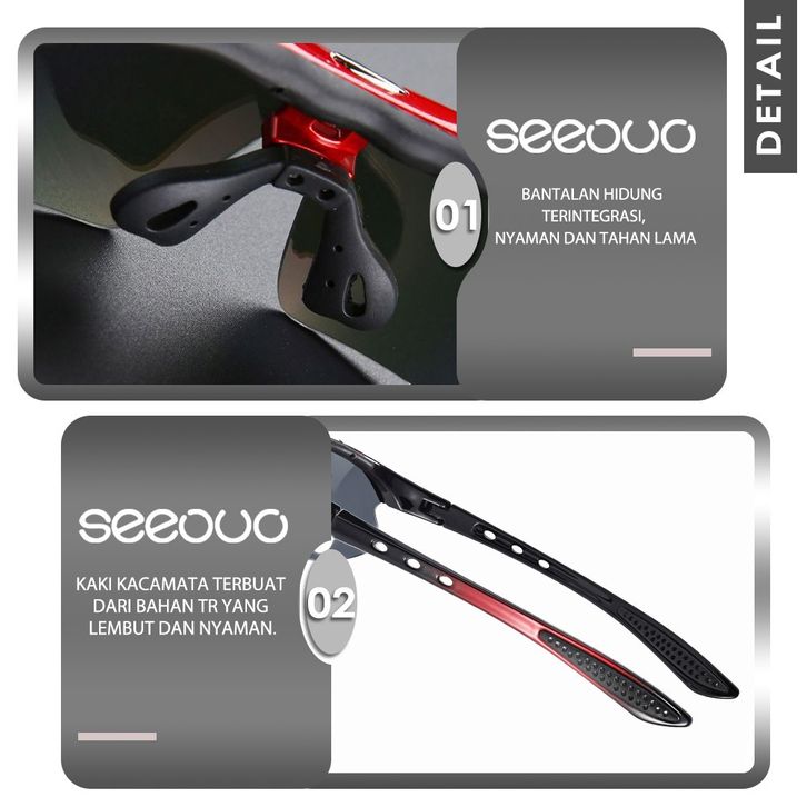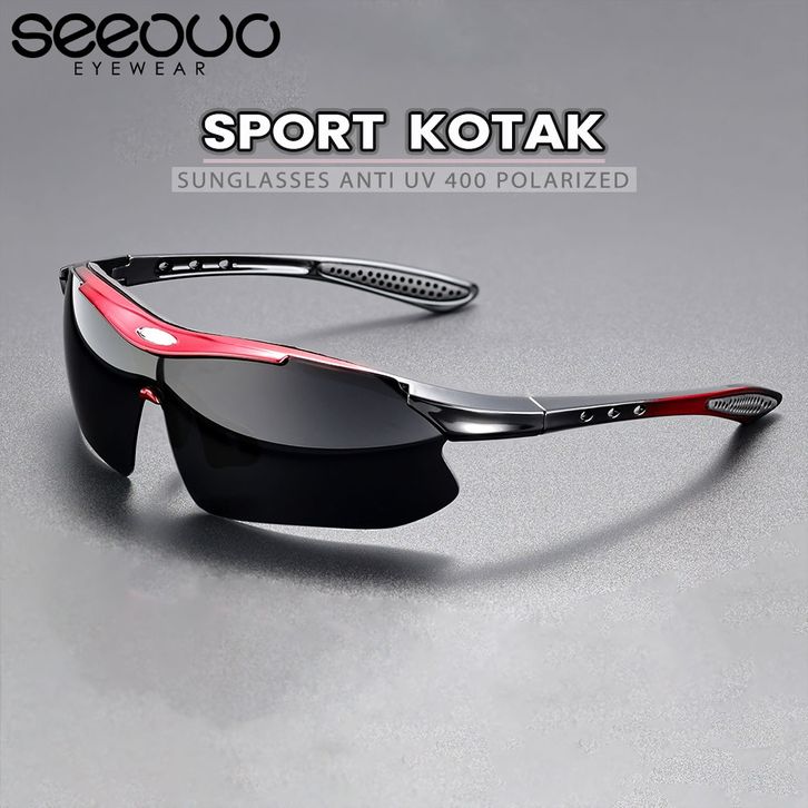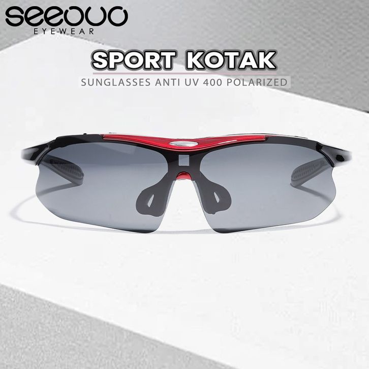 Kacamata Olahraga Seeouo Kacamata Olahraga UV 400 Protection Sunglasses Lens Polarized Sport Glasses M0Del Kotak Bahan