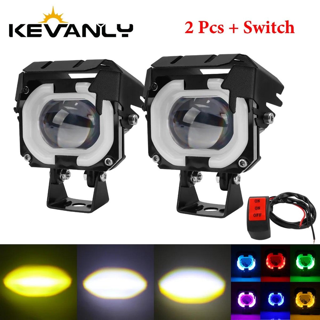Lampu Sorot Motor Mata Setan Multiwarna 12v-24v DRL Bohlam Modifikasi Kendaraan Listrik Kecerahan Tinggi Lampu Mengemudi
