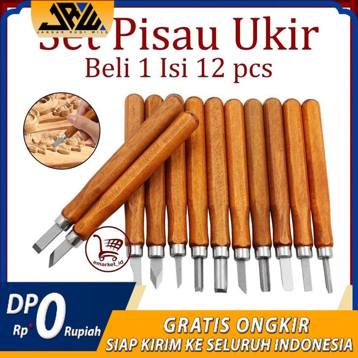 EM Set Pisau Ukir 12in1 AH81 / Pahat Kayu / Wood Carving / Alat Bonsai / Stainless Steel Knife