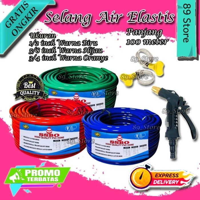 SELANG AIR 100 METER 1 ROL 1/2 5/8 3/4 INCH ELASTIS SELANG TAMAN CUCI MOTOR MOBIL TERLARIS