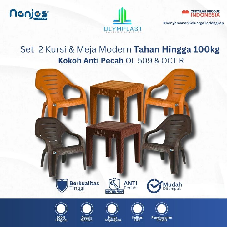 KURSI TERAS PLASTIK OLYMPLAST ROTAN OL 509 KURSI SANTAI KURSI OUTDOOR