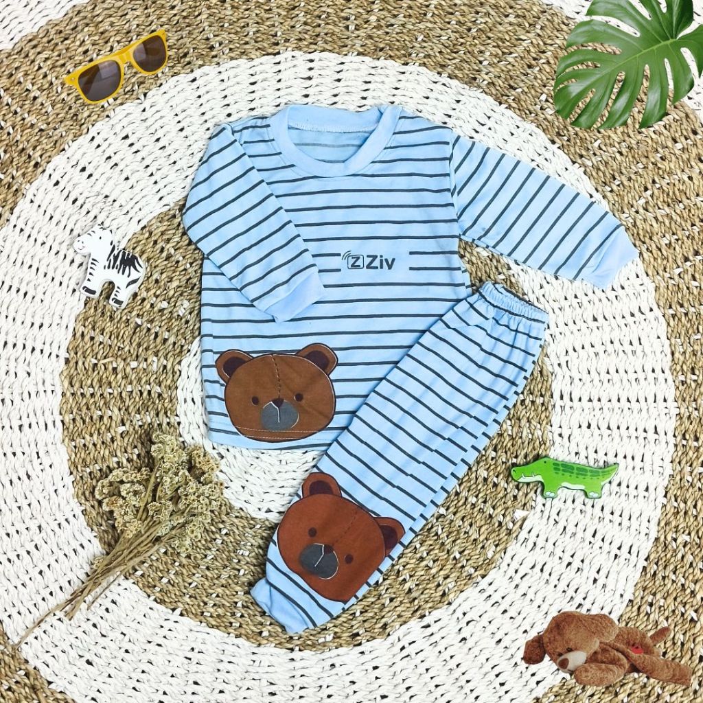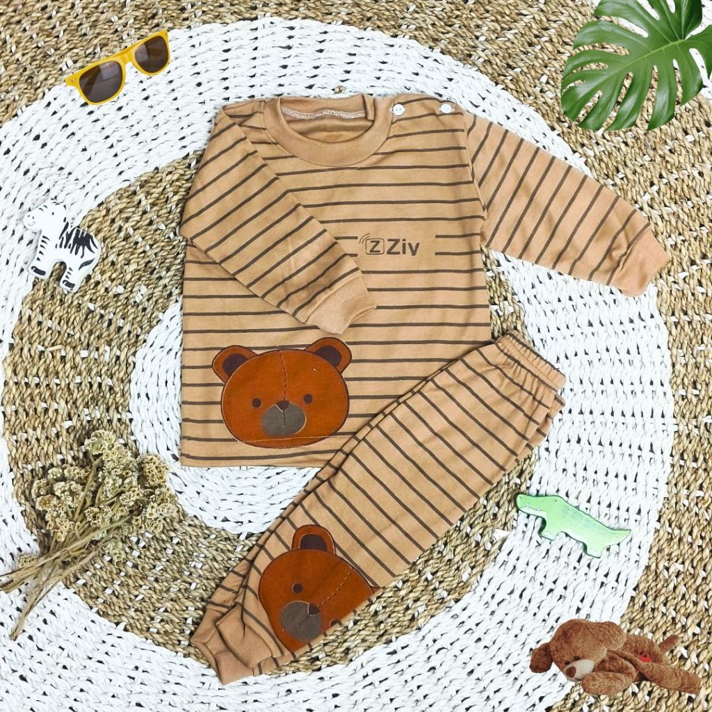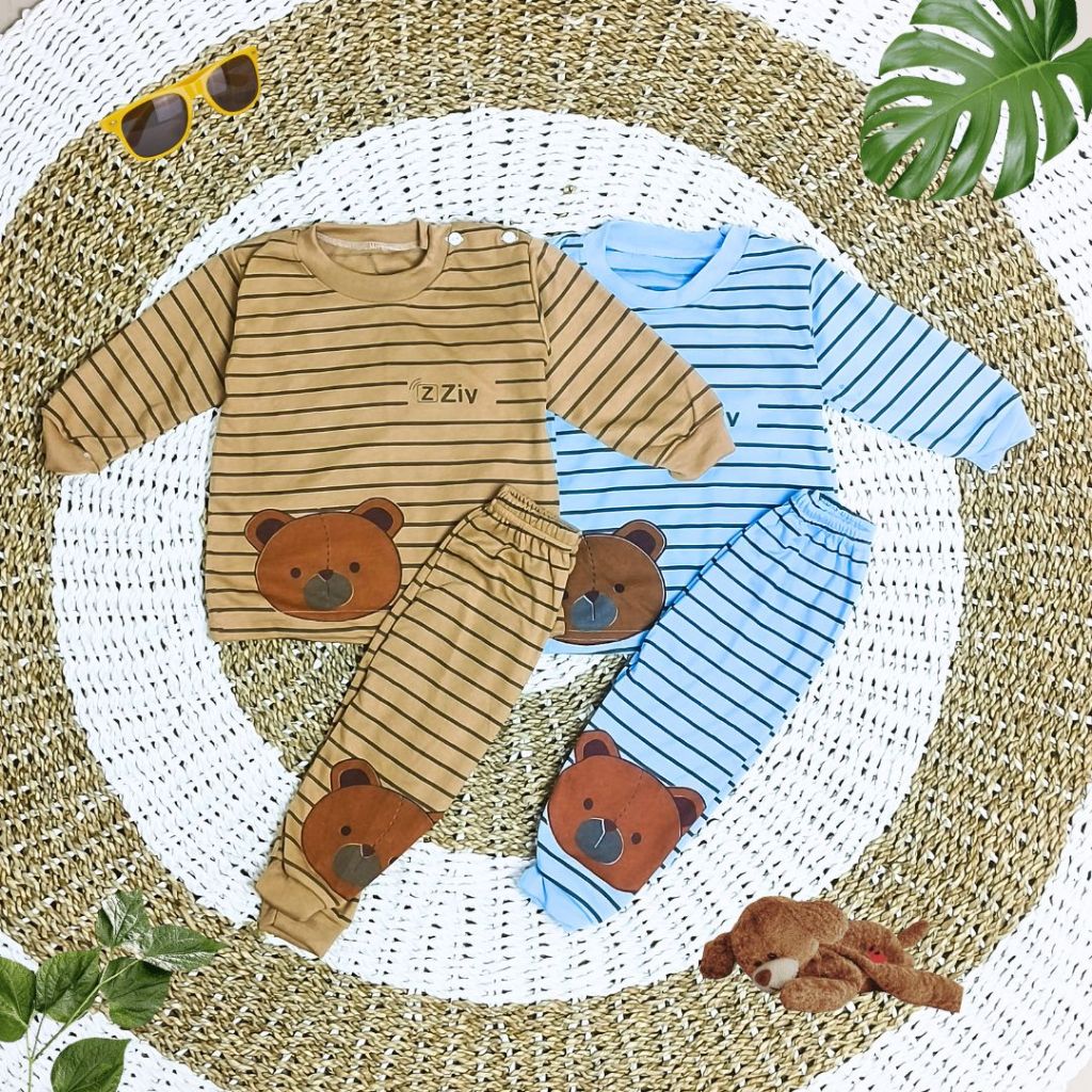 Setelan Baju Bayi Salur Teddy Bear/Piyama Anak Bear Usia 3-12 Bulan