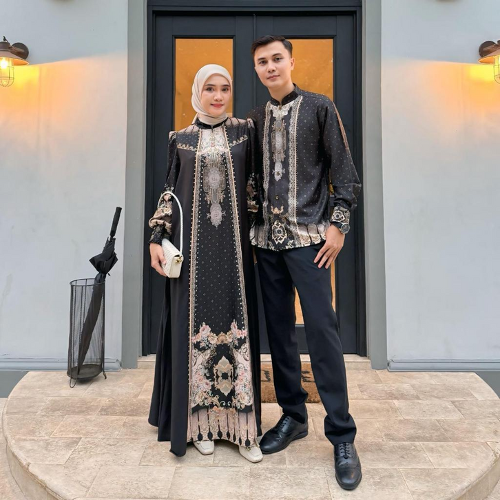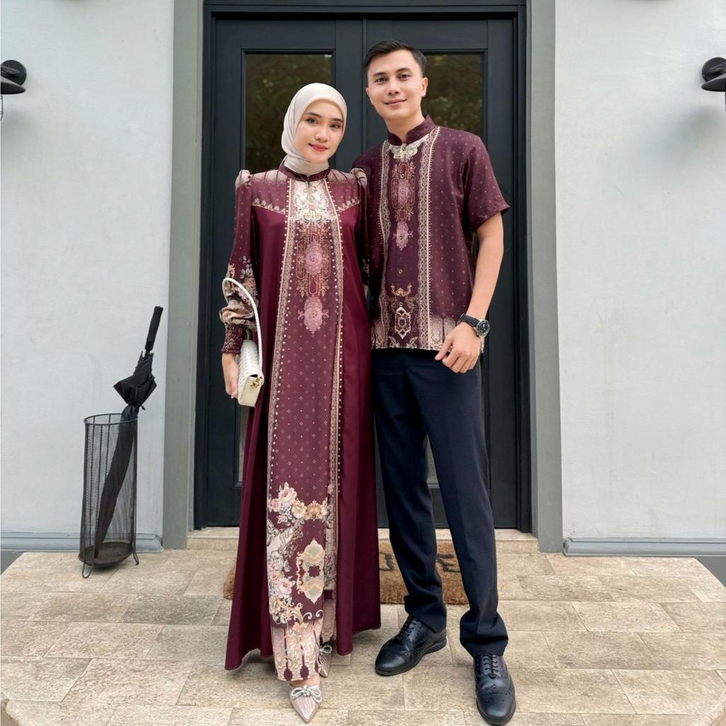 Baju Lebaran 2026 Couple Pasangan Lebaran Sarimbit Kayrina Baju Muslim Kondangan Motif Printing Baju Couple Keluarga