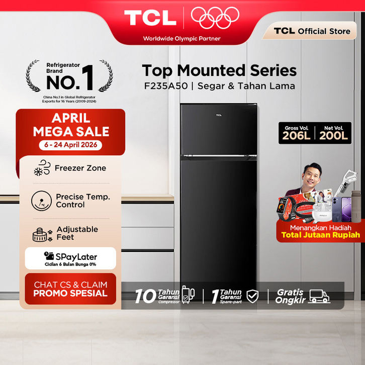 [BIGGER CAPACITY] KULKAS TCL Kulkas 2 Pintu (Refrigerator) - Kapasitas 206L - Lemari Es - Kulkas Murah (Model: F235-A50)