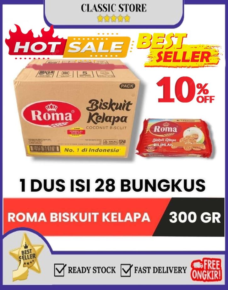 Roma Kelapa Biskuit Isi 28pcs 1 Karton - FREE ONGKIR