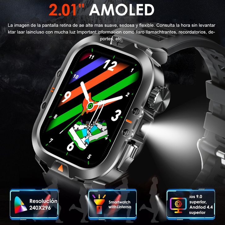 ENC Military Smart Watch for Men 2.01 Inches Outdoor Sports Smartwatch with Answer/Make Call,Fitness watch,Blood Oxygen