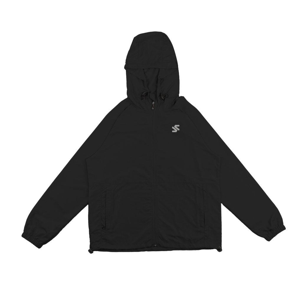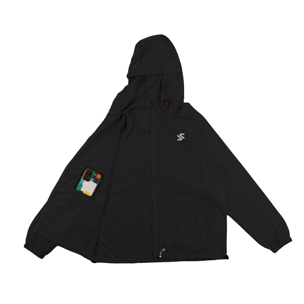 Saiber - Jaket Olahraga Running Parasut Polos Pria Wanita UV Protection Windbreaker Warna Hitam
