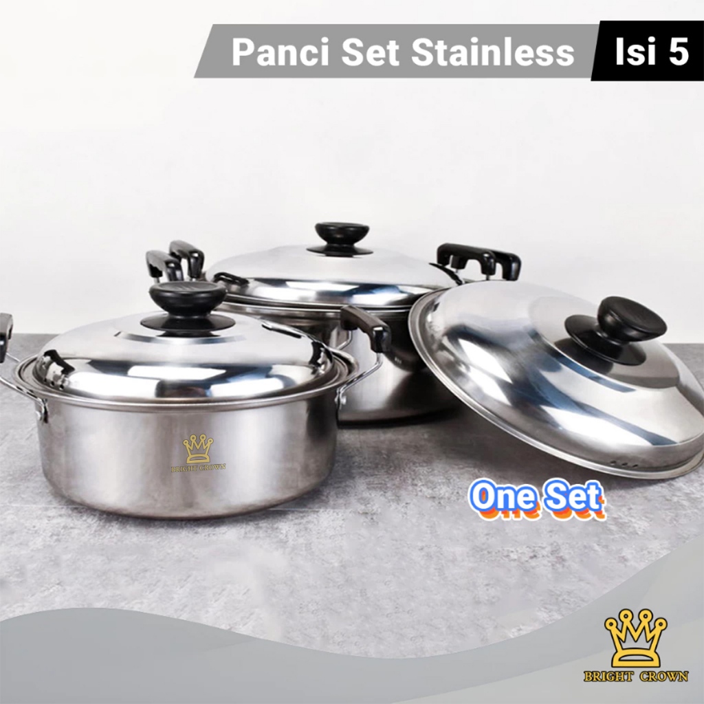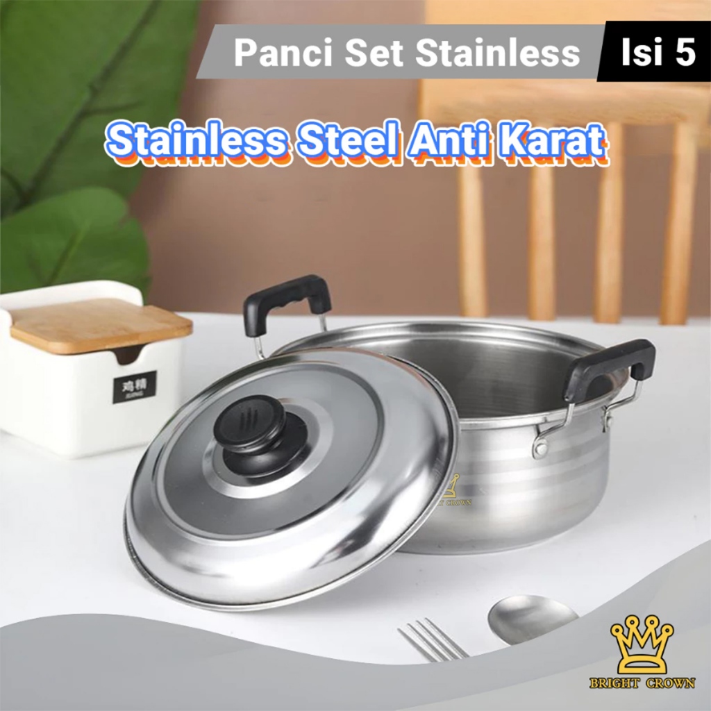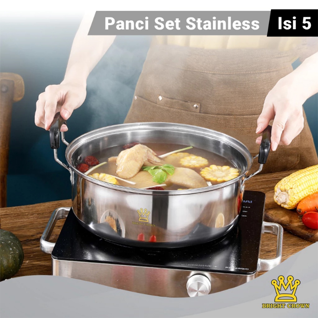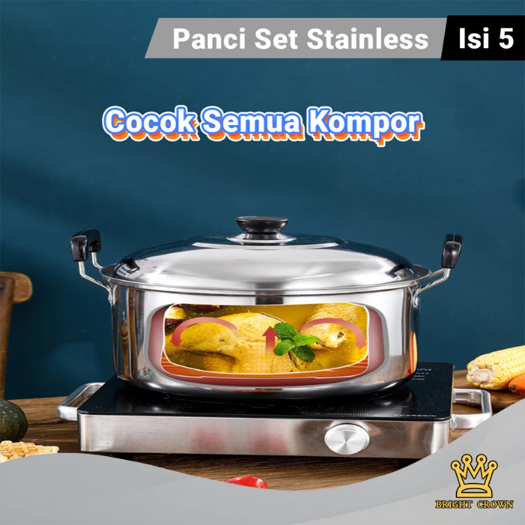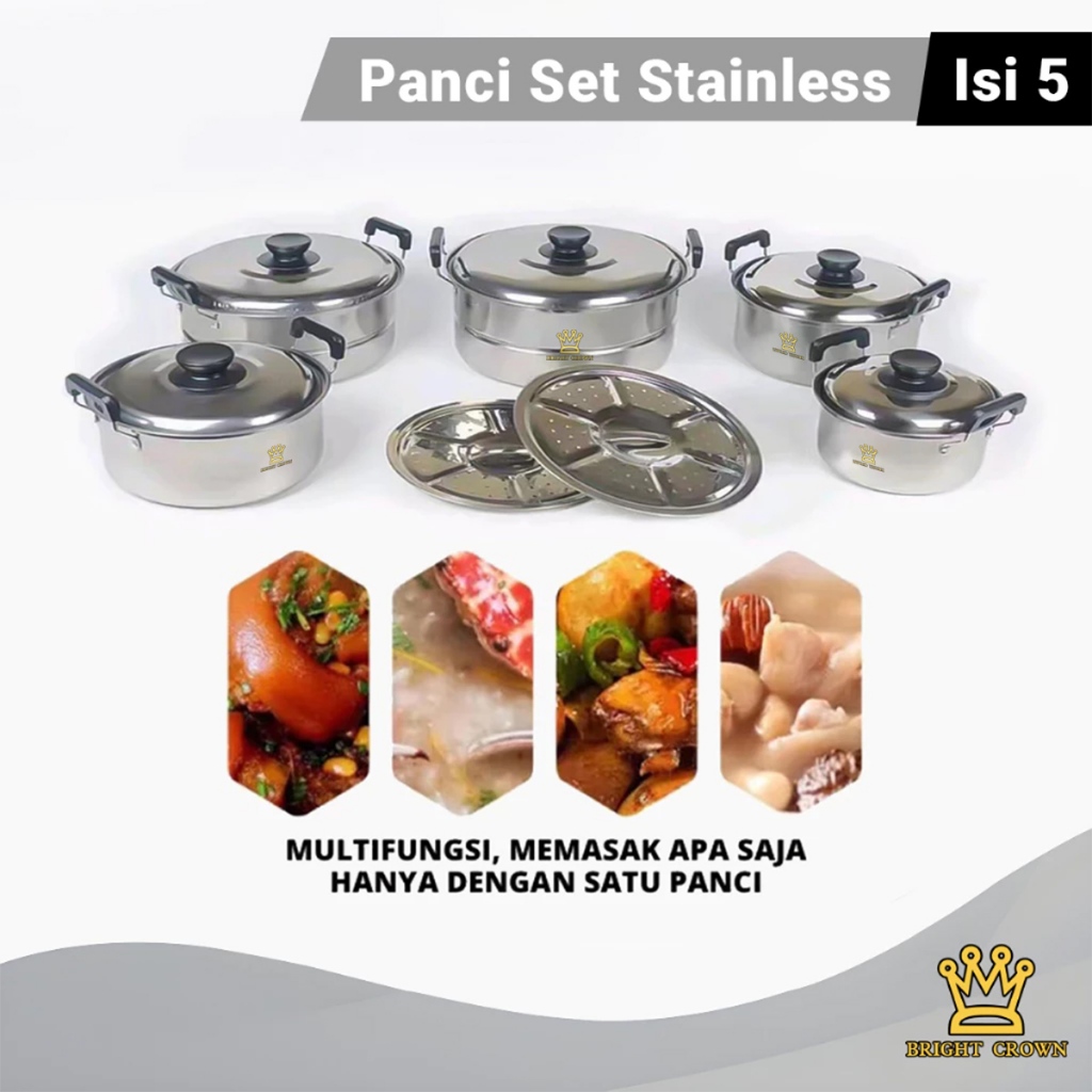 TERMURAH Bright Crown 12in1 Panci Steamer Set Stainless isi 5 pcs + 2pcs Kukusan Panci Bahan Tebal PREMIUM