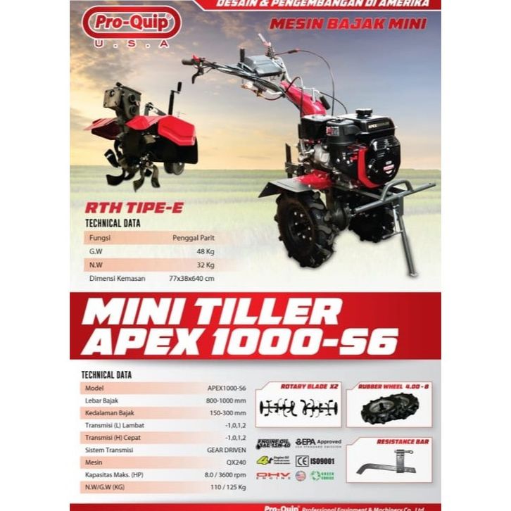 HAND TRAKTOR MINI TILLER PROQUIP APEX 1000-S6 + E DITCHING /RTH