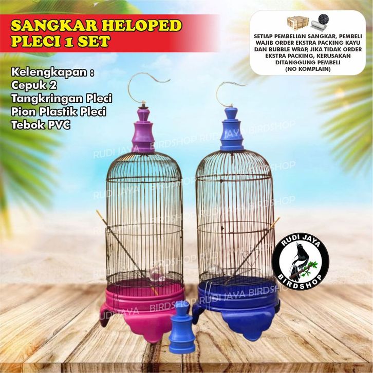 SANGKAR HELOPED PLECI 1 SET LENGKAP TEBOK PVC WARNA LENGKAP PION PLASTIK KANDANG BURUNG PLECI SOGON