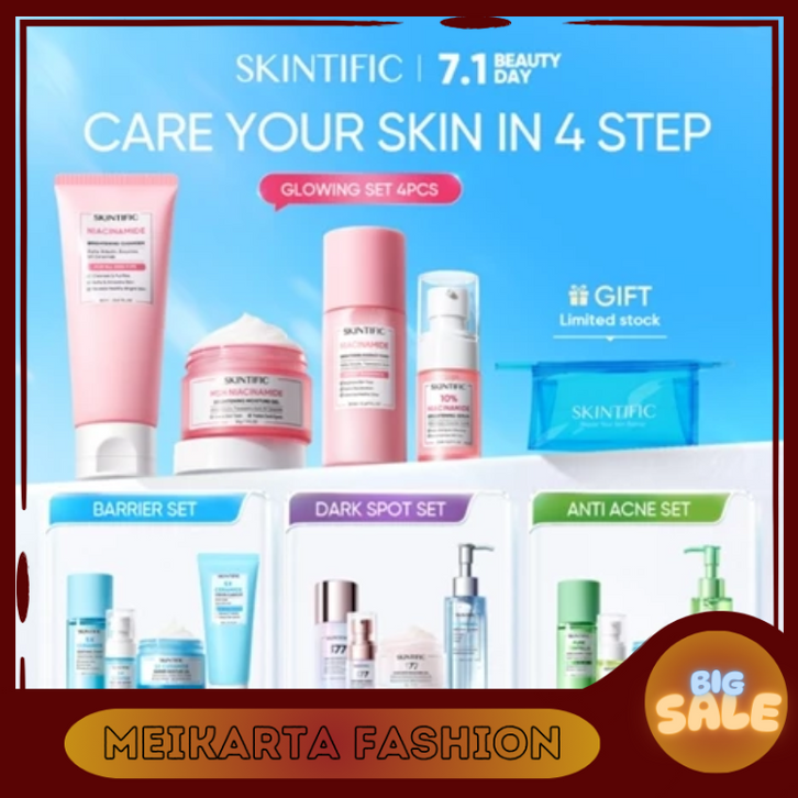 SKINTIFIC paket 4 pcs with serum Cleanser 5x Moisturizer Retinol Peeling Skincare Sunscreen Cushion OFFICIAL STORE Indo.