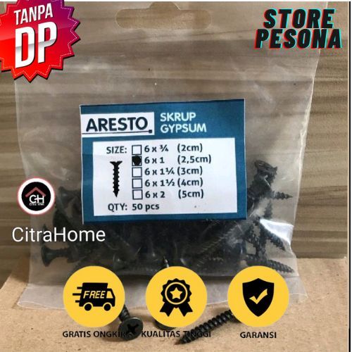Skrup Gypsum Aresto 6 x 1” (2,5cm) Per Bungkus Isi 50pcs