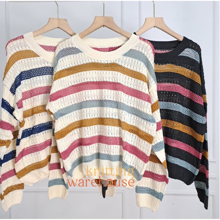 SWEATER WANITA RAJUT JARING STRIPES MAYZA TOP KNIT ATASAN CEWEK KEKINIAN TERLARIS
