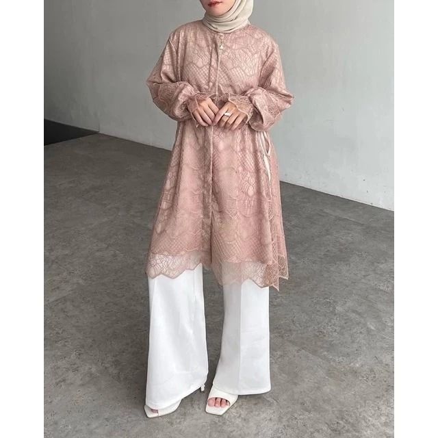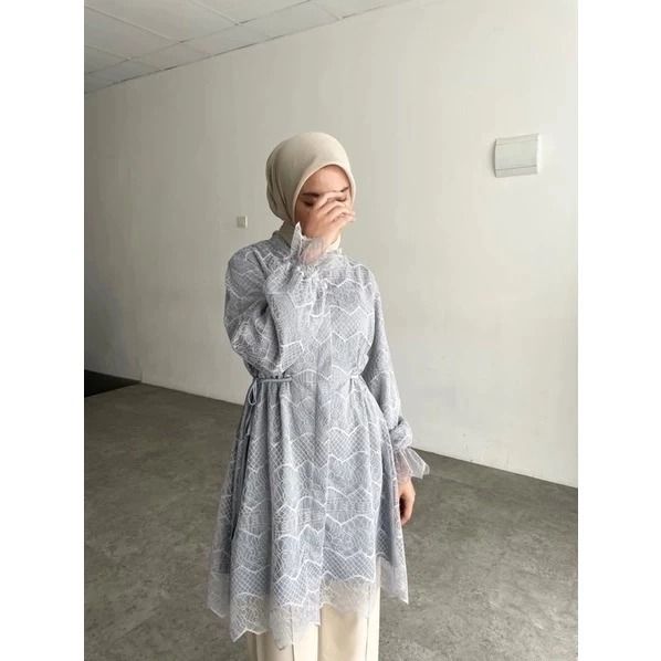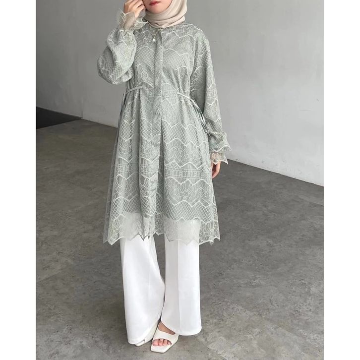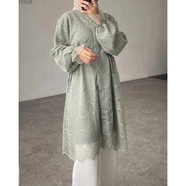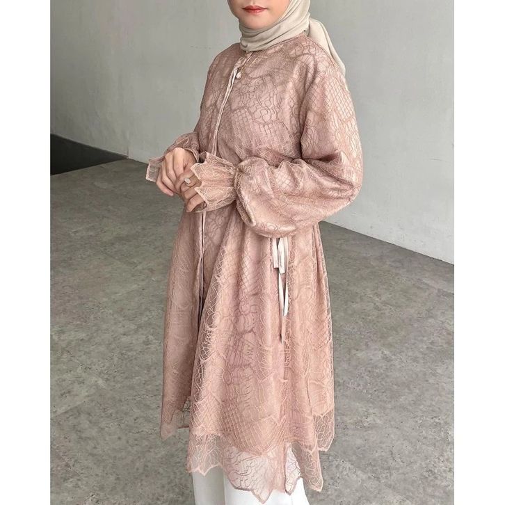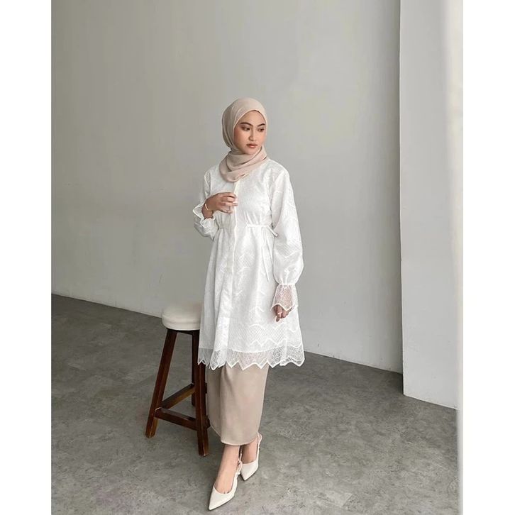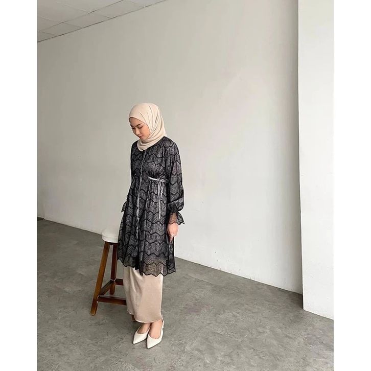 Amberia Tunik Busui Friendly Full Brukat Premium Atasan Wanita Muslim Baju Lebaran Wanita 2026