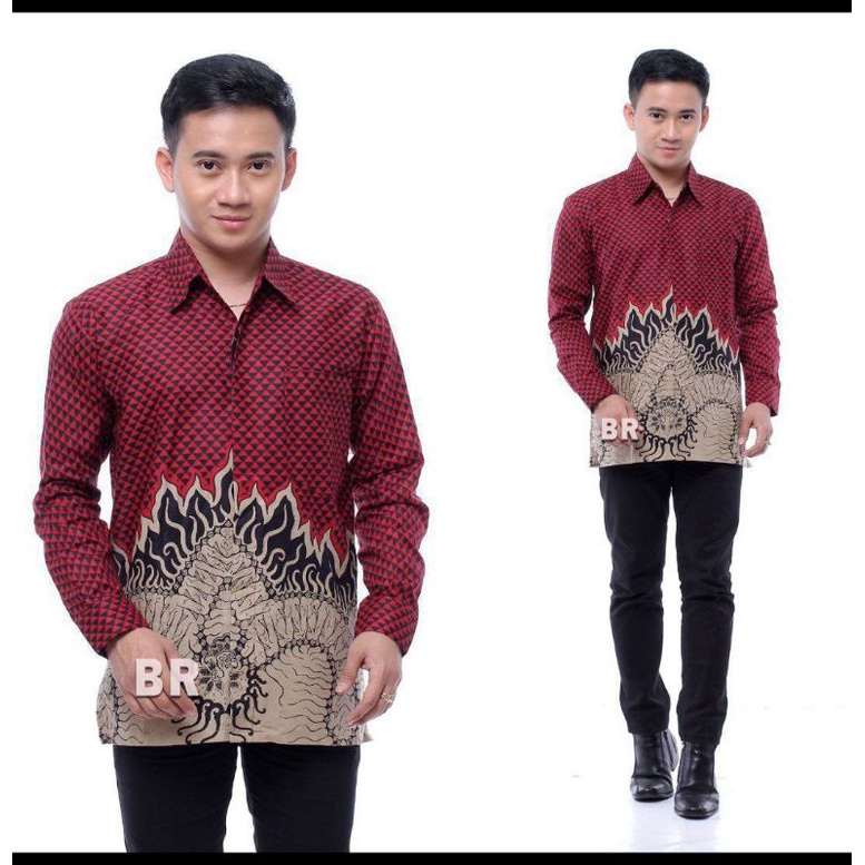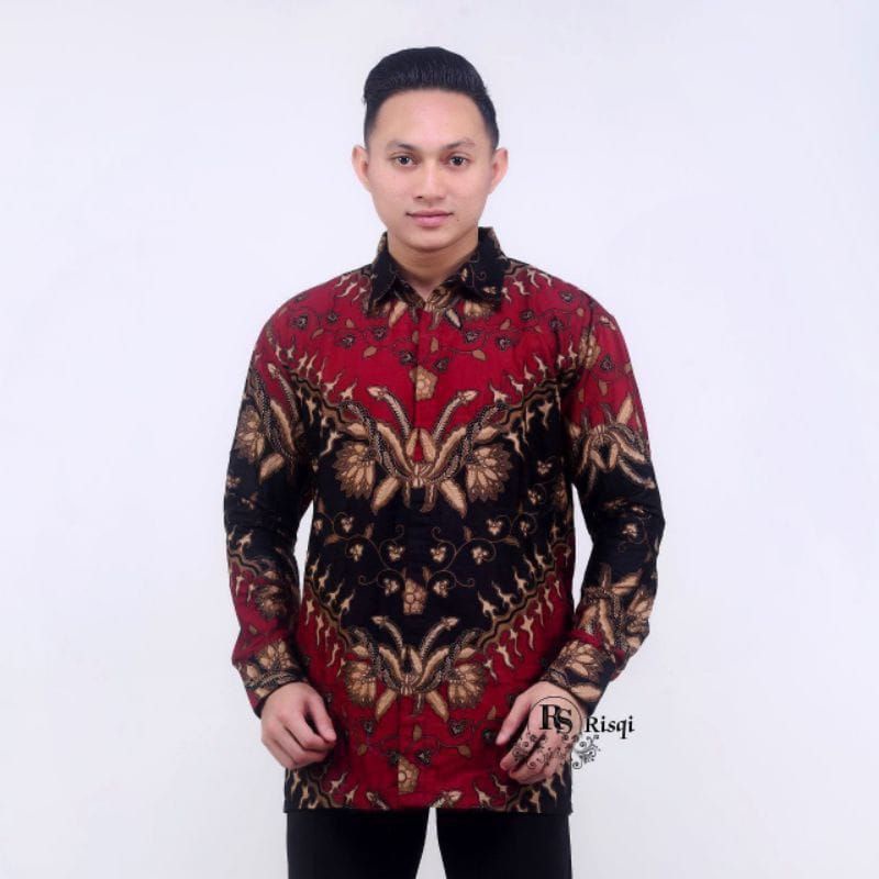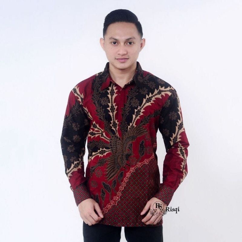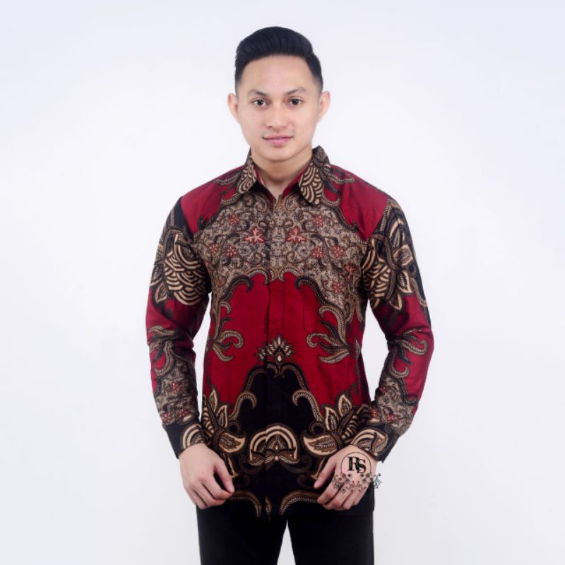 KEMEJA BATIK PRIA WARNA MERAH MAROON BATIK PRIA KATUN HALUS