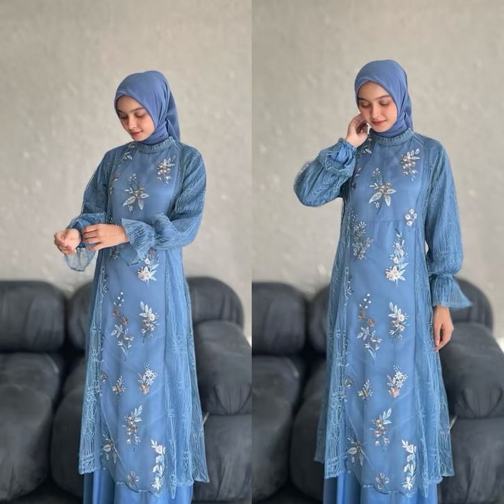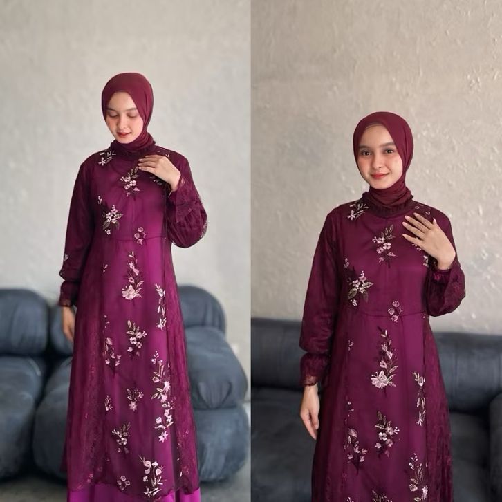 Dress Wanita/Dress Kondangan/ZEYA Dress Set ( Dress + Tunik Blouse Lace ) Dress Devarina Terbaru