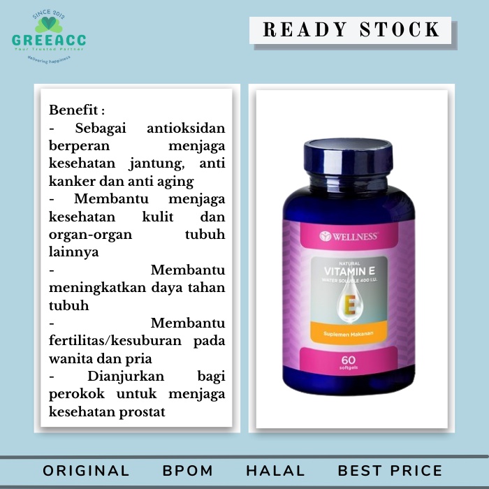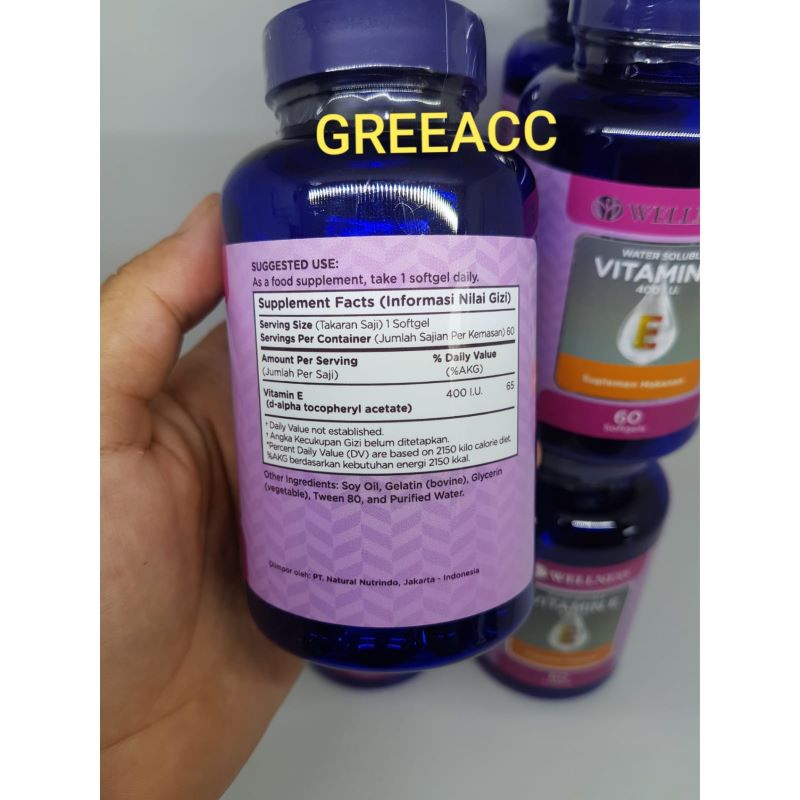 Wellness Vitamin E 400IU 60 Softgels Water Soluble Vit E 400 IU I.U.