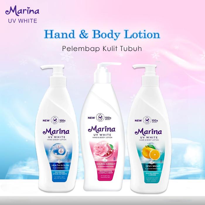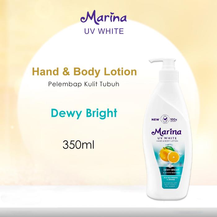 Lotion Tubuh & Tangan Marina UV White 350ml dengan Pompa - Pencerah Handbody Vitamin Mencerahkan - Dewy Bright