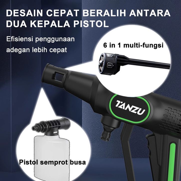 Steam Cuci Motor / Tanzu Mesin Cuci Mobil Nirkabel Bertekanan Tinggi / Penyemprot Portabel Listrik 6-in-1 / Jet Cleaner