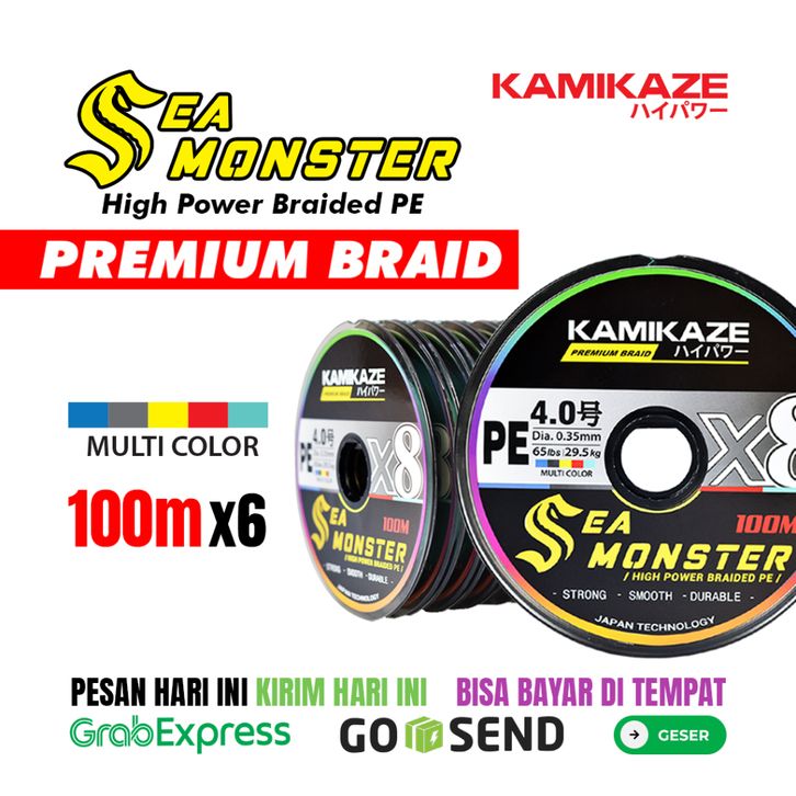 KAMIKAZE Senar Pancing SEA MONSTER X8 100M MULTICOLOR Tali Pancing PE CONNECTING Senar PE Premium