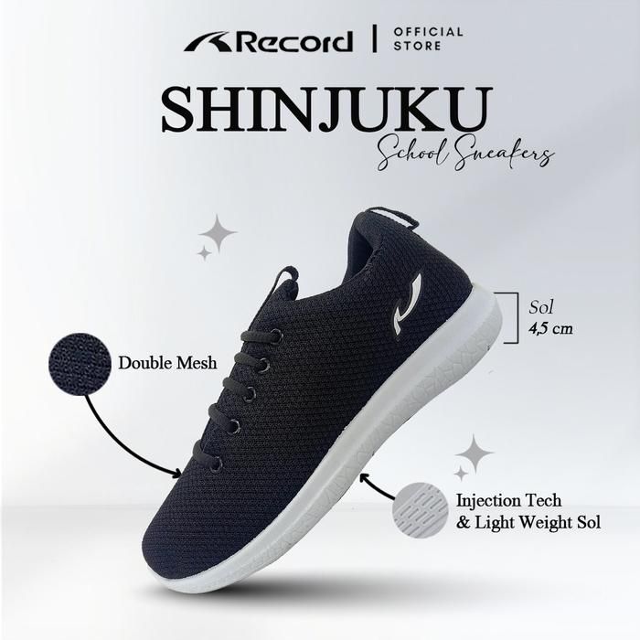 [RECORD SHOES] Shinjuku I SEPATU ANAK SEKOLAH HITAM PUTIH TALI SD SMP SMA I SNEAKER SIZE 33-40 - Hitam, 33 (21cm)