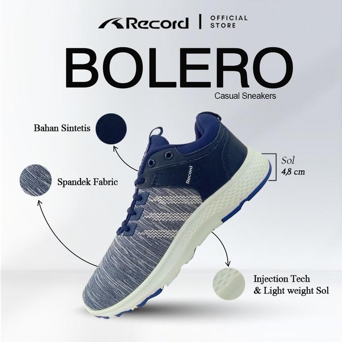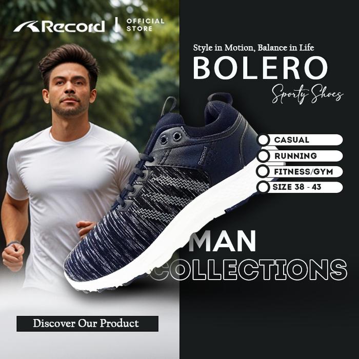 [RECORD SHOES] BOLERO I Sneakers Laki Laki I Sepatu Olahraga Kerja Casual Outbond I Size L 38-43 Pria Running Sport - AB