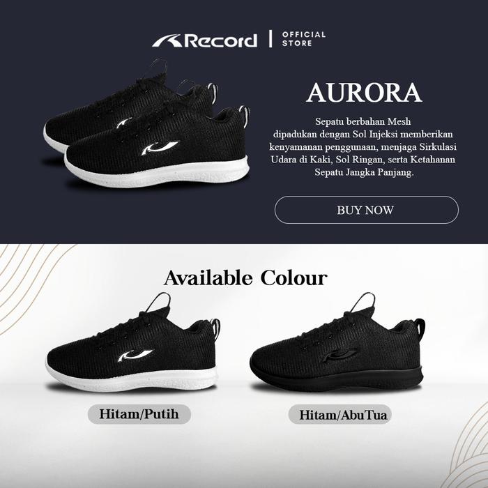 RECORD AURORA SEPATU SEKOLAH ANAK SMP SMA PEREMPUAN HITAM POLOS/PUTIH TALI 33-40 - hitam hitam, 33 (21cm)