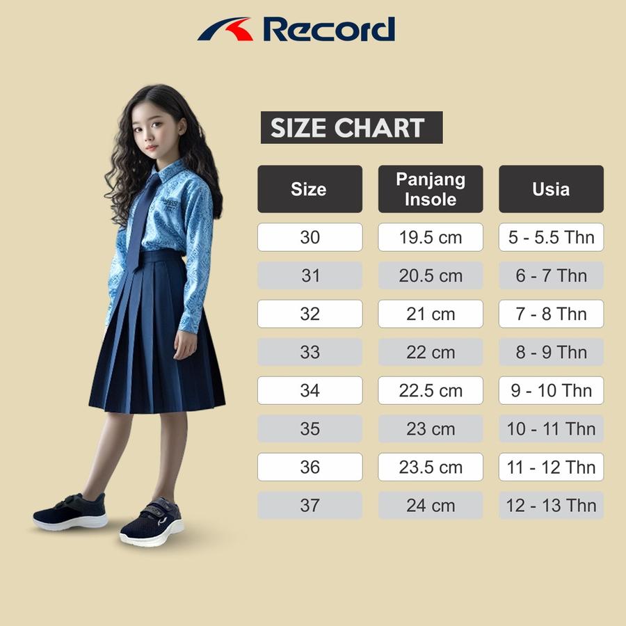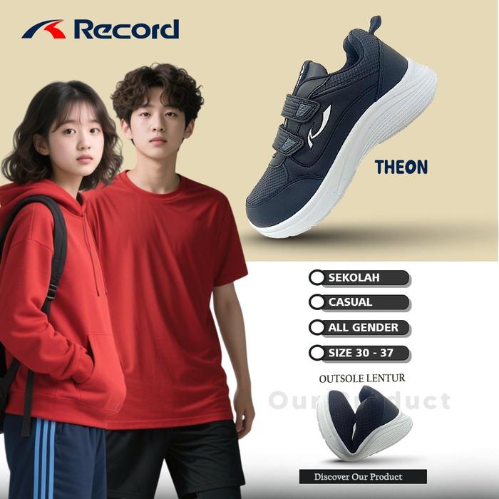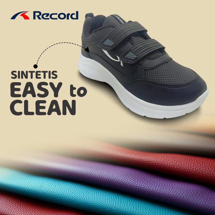 RECORD THEON SEPATU SEKOLAH ANAK 4-13TH TK-SMP HITAM POLOS/PUTIH PEREKAT 30-37 Fashion