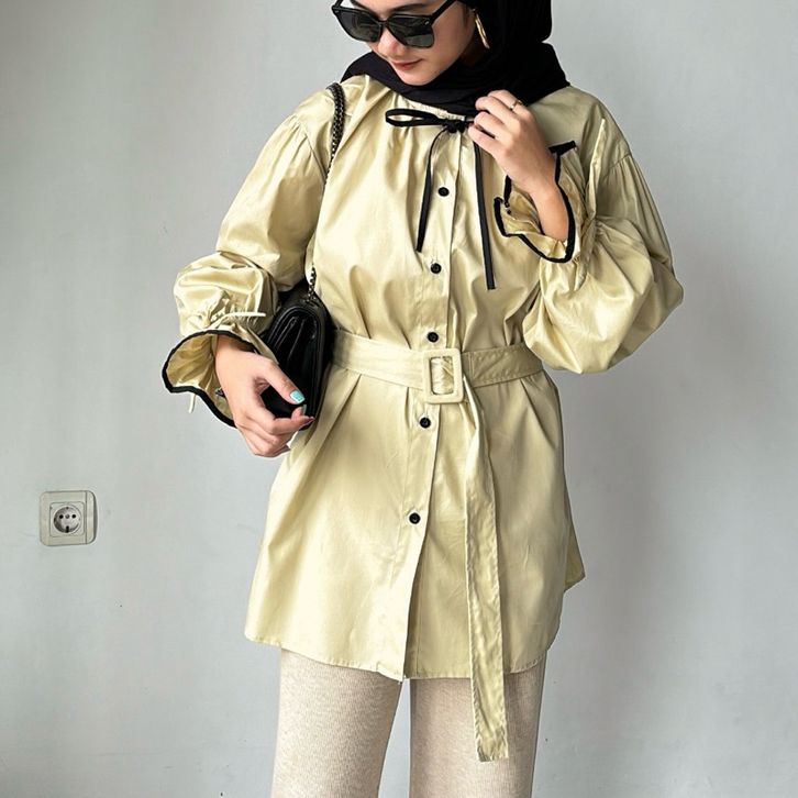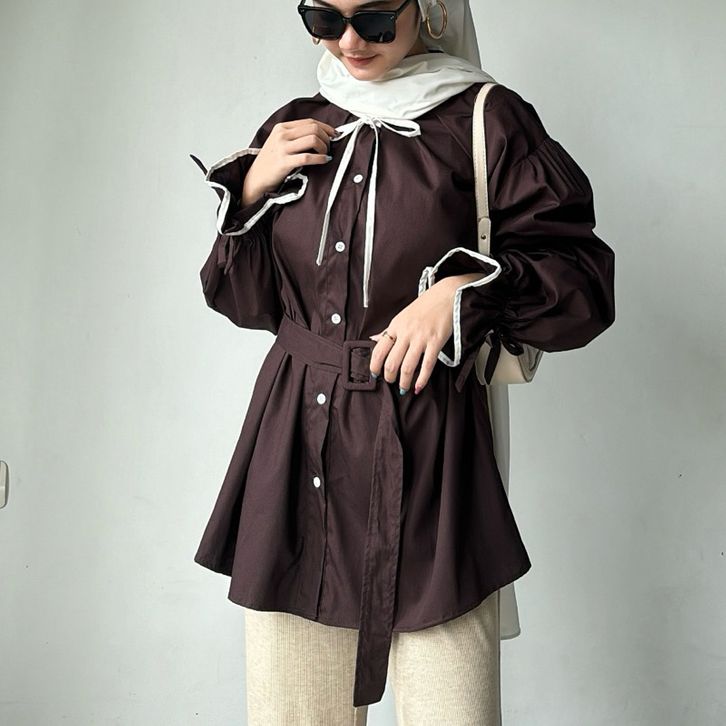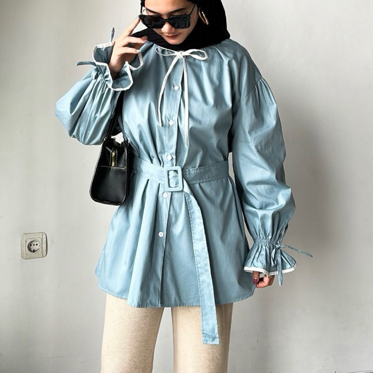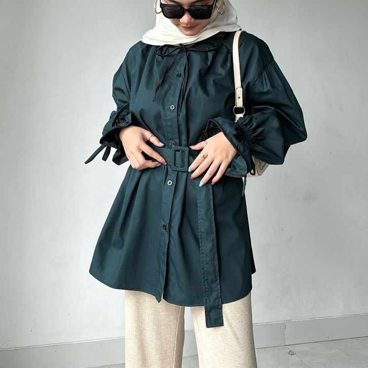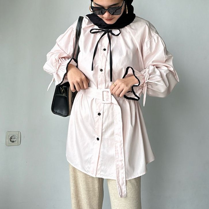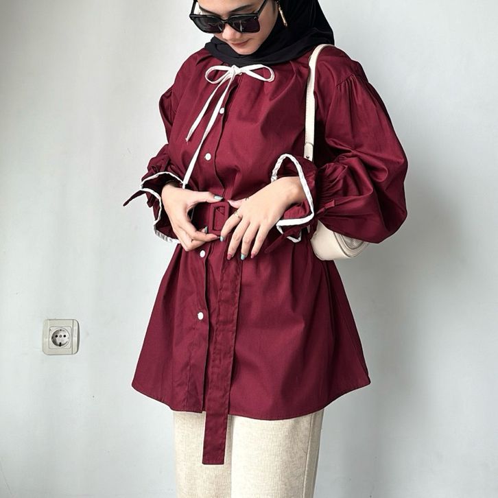Kemeja Wanita Terbaru Bahan Adem Lengan Panjang Leoza Katun Poplin Blouse Belt Kemeja Wanita Terbaru 2025 Kekinian Viral