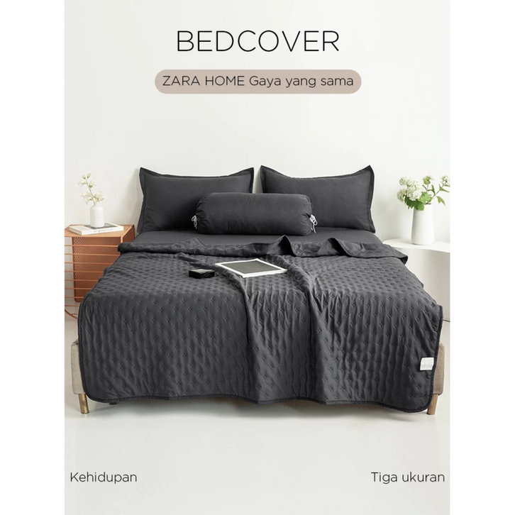BED COVER SET SPREI KASUR BANTAL GULING FULL PRESSING KARET KELILING LEMBUT MOTIF POLOS