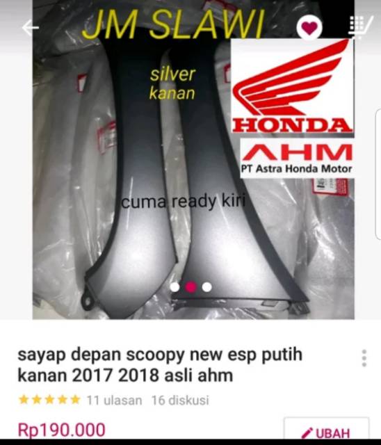 Sayap Depan Scoopy F1 New Esp Tahun 2017-2020 Asli Atau Ori Honda Ahm