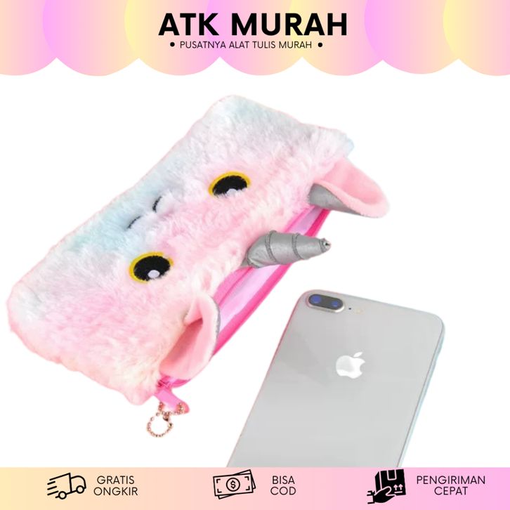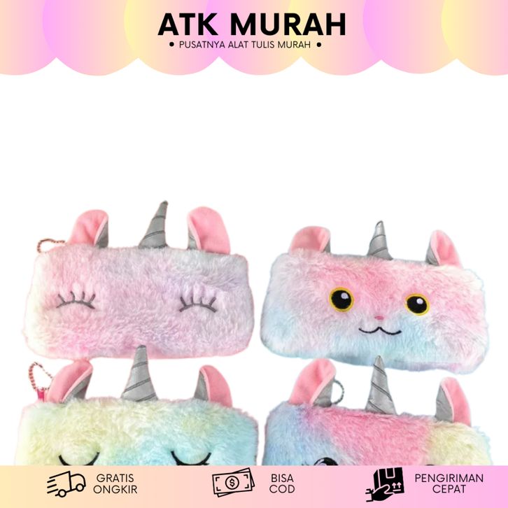 KOTAK PENSIL BULU UNICORN MUKA MATA TEMPAT PENSIL BULU RAINBOW LUCU ALAT TULIS SEKOLAH MURAH TERJANGKAU